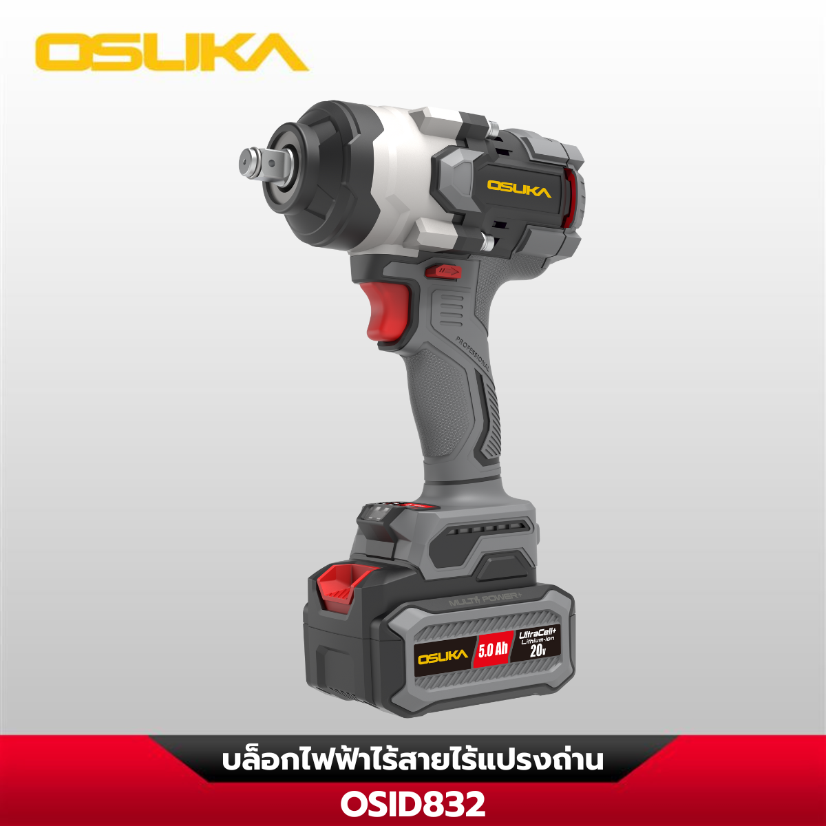 🔴 บล็อกไฟฟ้าไร้สายไร้แปรงถ่าน OSID832-N1 (ตัวเปล่า) 🔴 บล็อกไฟฟ้าไร้สายไร้แปรงถ่าน OSID832-P1อุปกรณ์ในชุด ตัวเครื่องบล็อกไฟฟ้าไร้สาย x1 ตัว / แบตเตอรี่ 20v 5.0Ah Osuka = 1 ก้อน / แท่นชาร์ต Osuka = 1 อัน / ลูกบล็อกเบอร์ 21 = 1 ลูก / สายคล้อง = 1 เส้น / กล่องเก็บเครื่องมือ = 1 ใบ